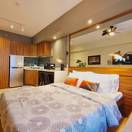 Een ingerichte keuken met een waterkoker, een koelkast en keukengerei behoren tot de voorzieningen voor self-catering. Het is gesitueerd binnen een straal van 200 meter station to Ayala Mall bushalte.